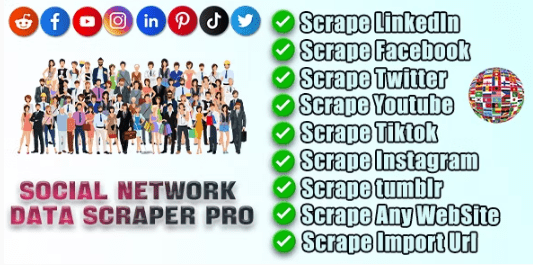 Social Network Data Scraper Pro is a powerful tool that allows you to bulk extract email and phone numbers from various social media platforms including Facebook, Twitter, Instagram, LinkedIn,Youtube,Pinterest,TikTok,tumblr and any website. Support for proxy features that allow you to extract data from any website without any blocking, you can easily collect contact information of potential customers and use it for your marketing and sales efforts.